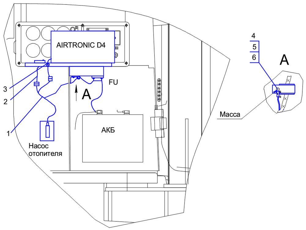 Электрооборудование установки отопителя «AIRTRONIC D4» на Т10М