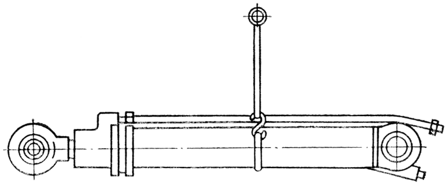 Отверните два болта 23 крепления бугеля к корпусу цилиндра, снимите бугель 29 и прокладку 24. Отверните накидную гайку трубы 6 и снимите трубу. Отверните болты.22 крепления крышки и выньте шток 3 с поршнем 9 из корпуса цилиндра вместе с крышкой 4 и деталями уплотнения. Сверните накидную гайку 13 и гайку 12 крепления поршня на штоке. Снимите со штока поршень 9. с деталями уплотнения.